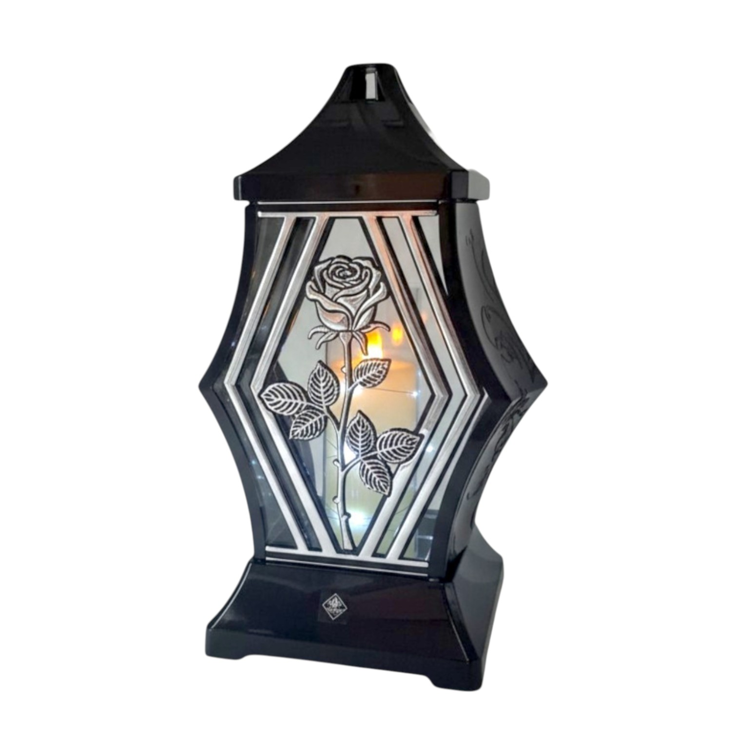 Znicz Diament Róża 29 cm – czarny złoty / srebrny | LED w komplecie