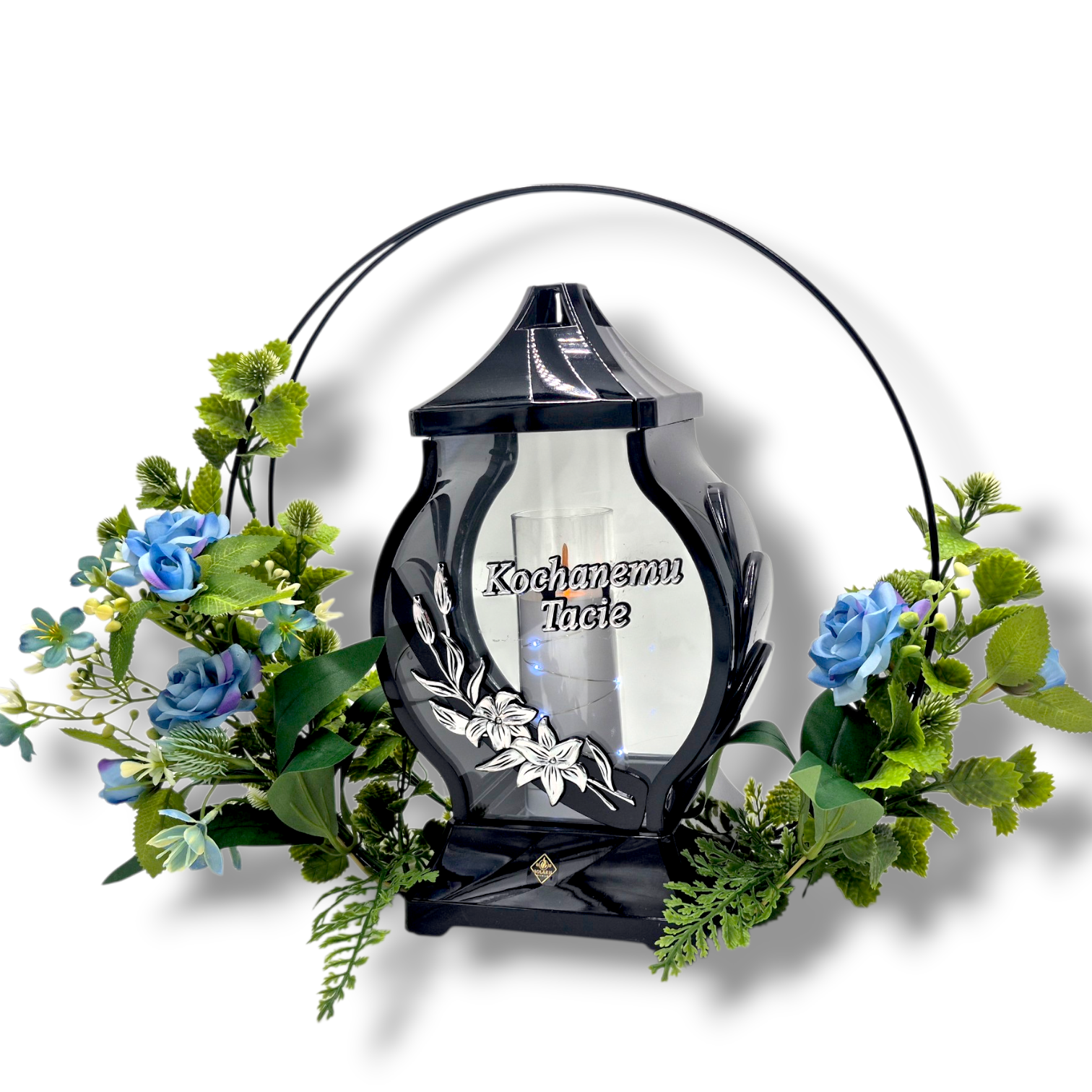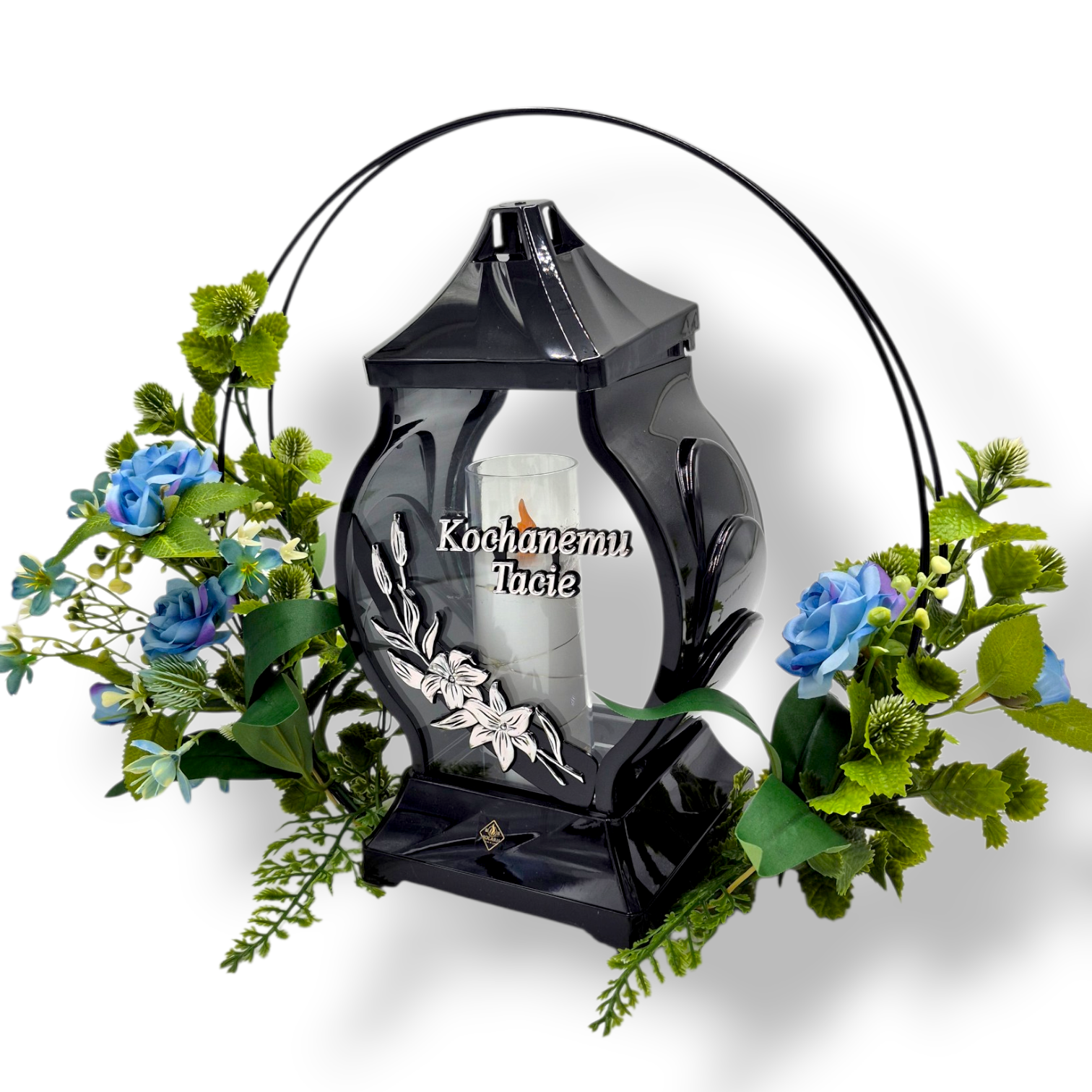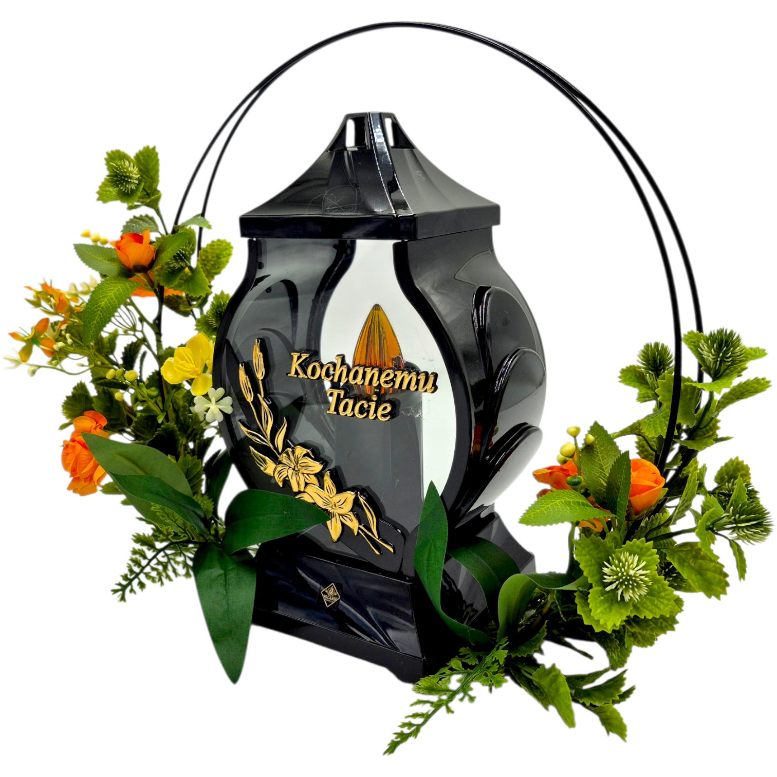 Połączenie klasycznej czerni z dekoracyjnymi zdobieniami oraz kompozycją kwiatową sprawia, że dekoracja prezentuje się bardzo estetycznie na każdym nagrobku. Tego typu znicze są często wybierane przez osoby, które chcą symbolicznie uczcić pamięć swojego taty.