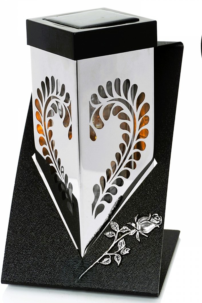 Dzięki zasilaniu solarnemu znicz zapewnia efektowny blask bez konieczności regularnej wymiany tradycyjnych wkładów. Ozdobne wycięcia pięknie pracują ze światłem, tworząc przyjemny, ciepły efekt, który szczególnie dobrze prezentuje się o zmierzchu.