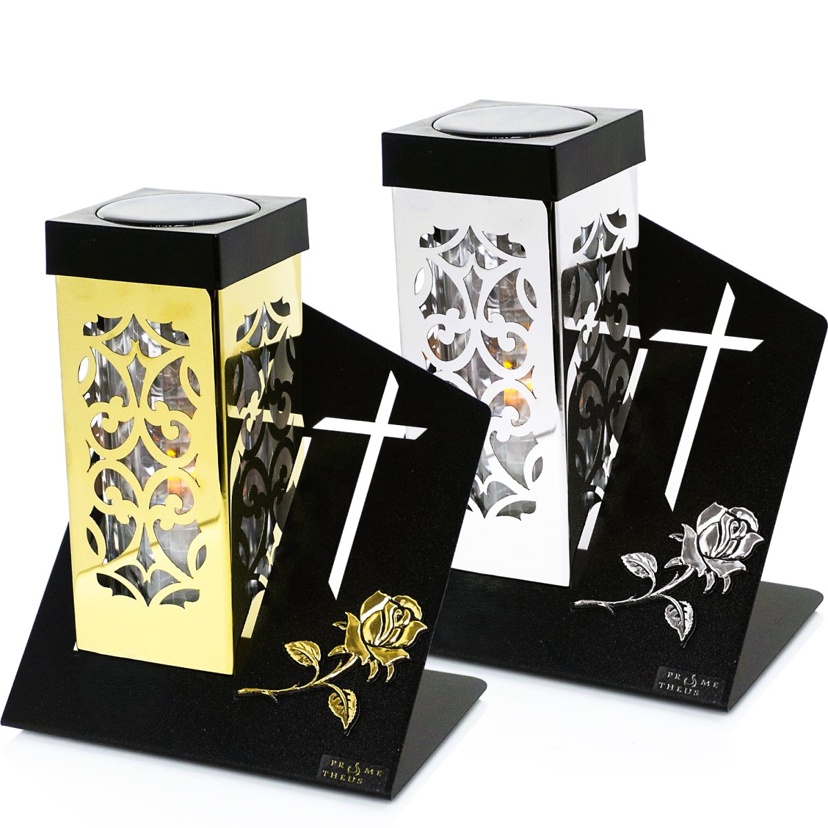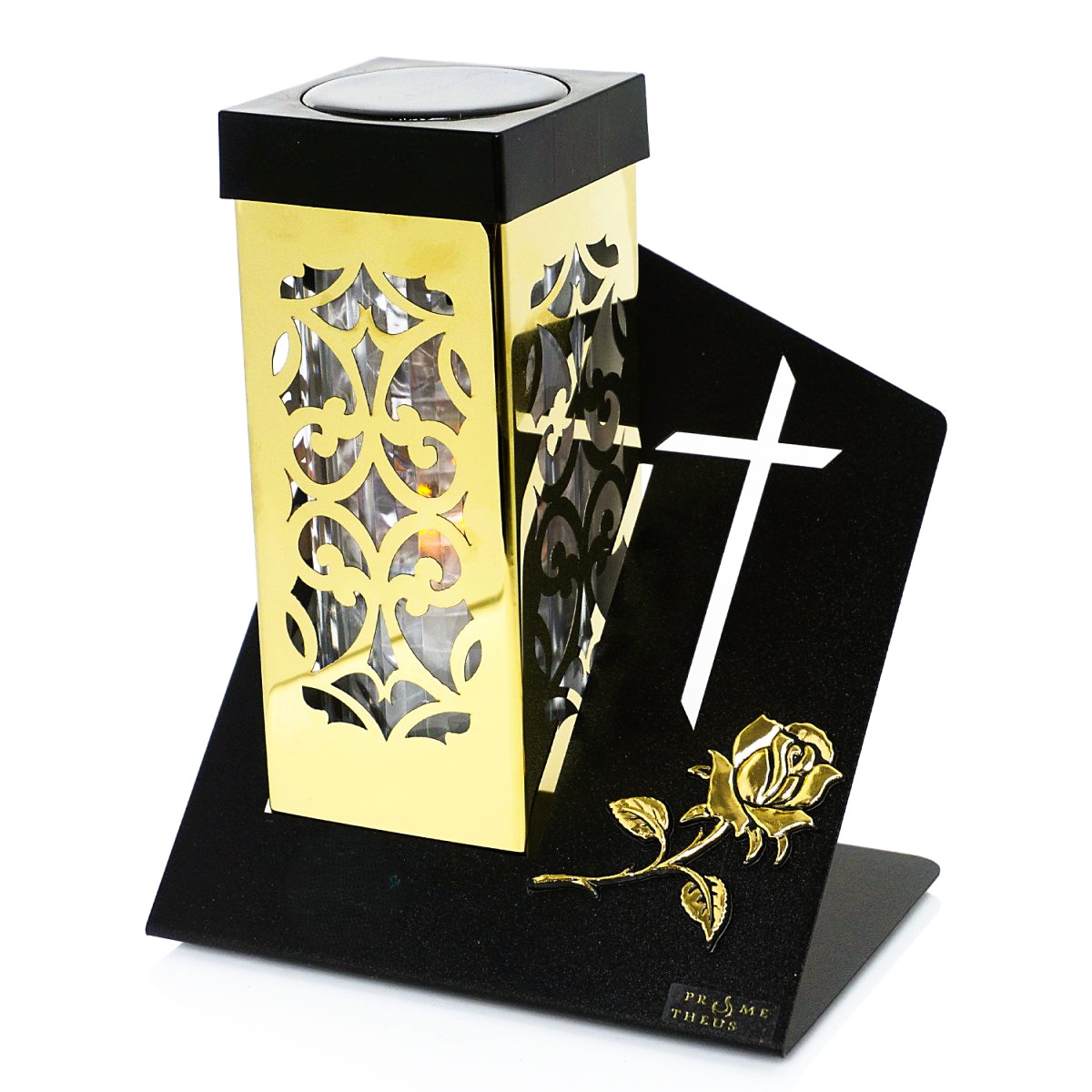 Solaris PARIS II Krzyż & Róża to znicz solarny stworzony dla osób, które szukają połączenia nowoczesnej formy, symboliki i wygody użytkowania. Skośna, czarna podstawa z wyciętym krzyżem nadaje modelowi wyrazisty, a jednocześnie stonowany charakter, a delikatna aplikacja róży podkreśla elegancję i wymiar pamięci.