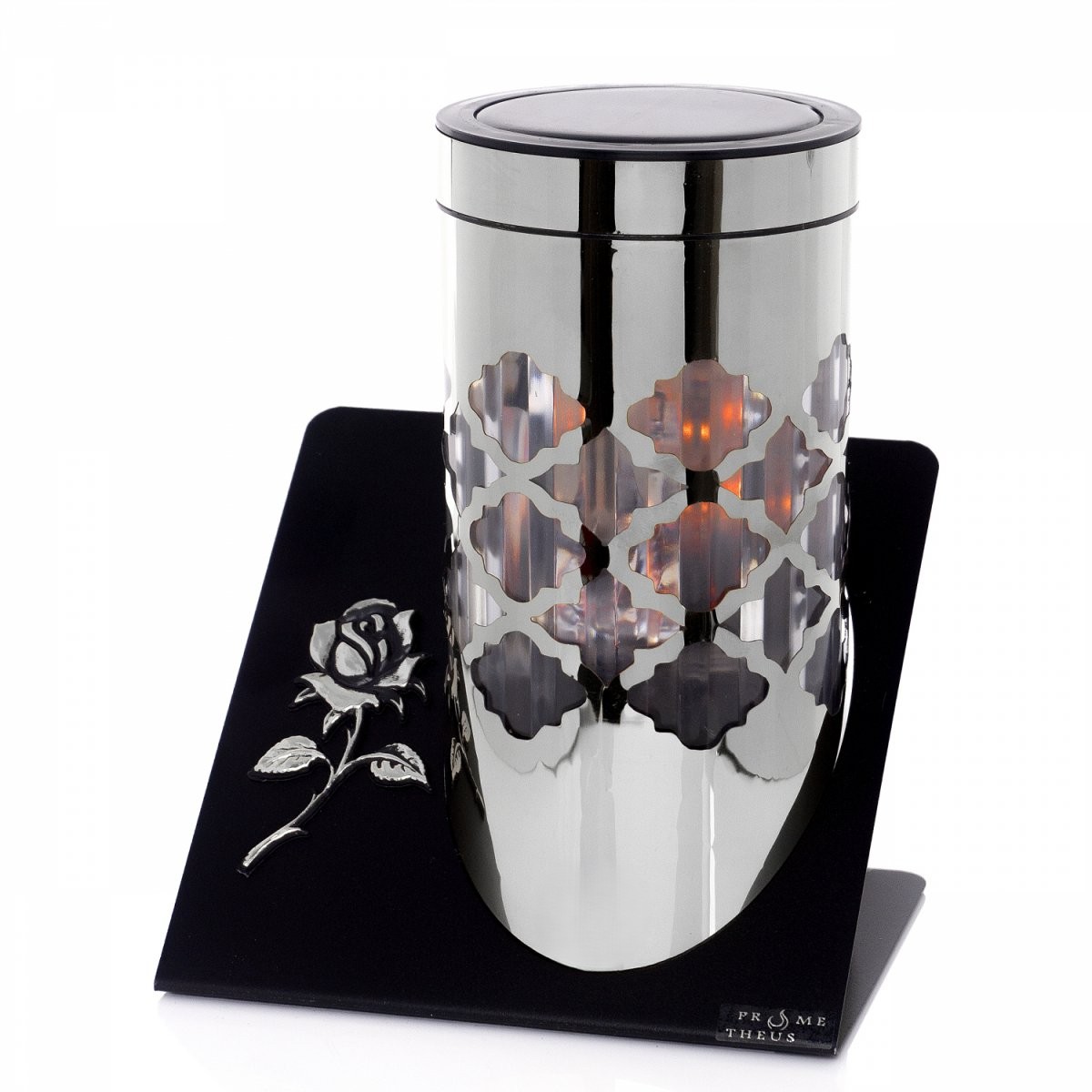 SOLARIS PARIS to znicz premium stworzony z myślą o osobach, które cenią elegancję, nowoczesną formę i dopracowane detale. Lustrzane wykończenie w połączeniu z dekoracyjnym ażurowym wzorem nadaje całości wyrafinowany charakter, a delikatna aplikacja róży podkreśla symbolikę pamięci.